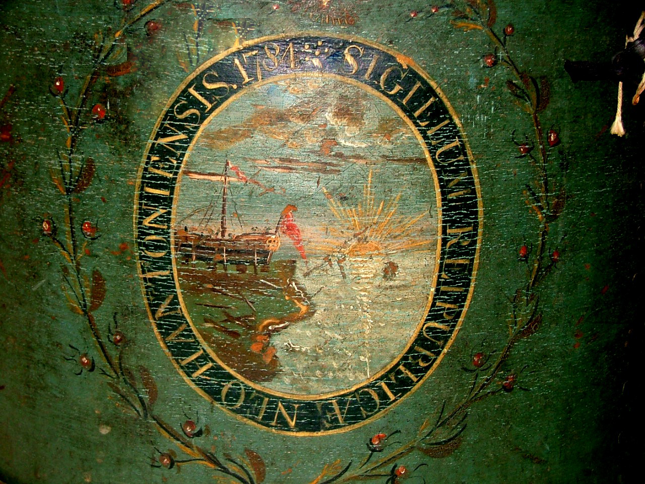This beautiful drum, from The Arlington Historical Society archives, pictured here, is a lovely soft green with blue undertones. Wooden…