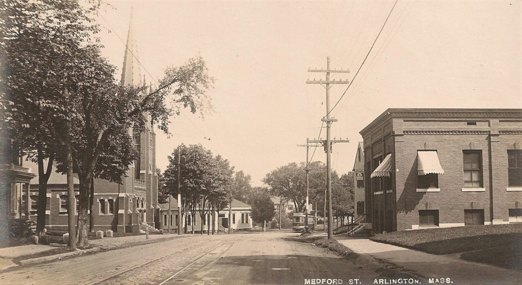 The main reasons for such slow progress in local telephony were twofold. There were years of backlog due to materials and production diverted to military needs during World War II. Also, the former telephone exchange building on Medford Street (still standing as part of St. Agnes’s Fidelity House) was inadequate to house the new automatic mechanical Number Five Crossbar Switching System (5XB switch). When New England Telephone was ready to bring the dial telephone to Arlington, it coincided with the opening of a new exchange and business office building (today owned by successor company Verizon) at 67 Pleasant St.
