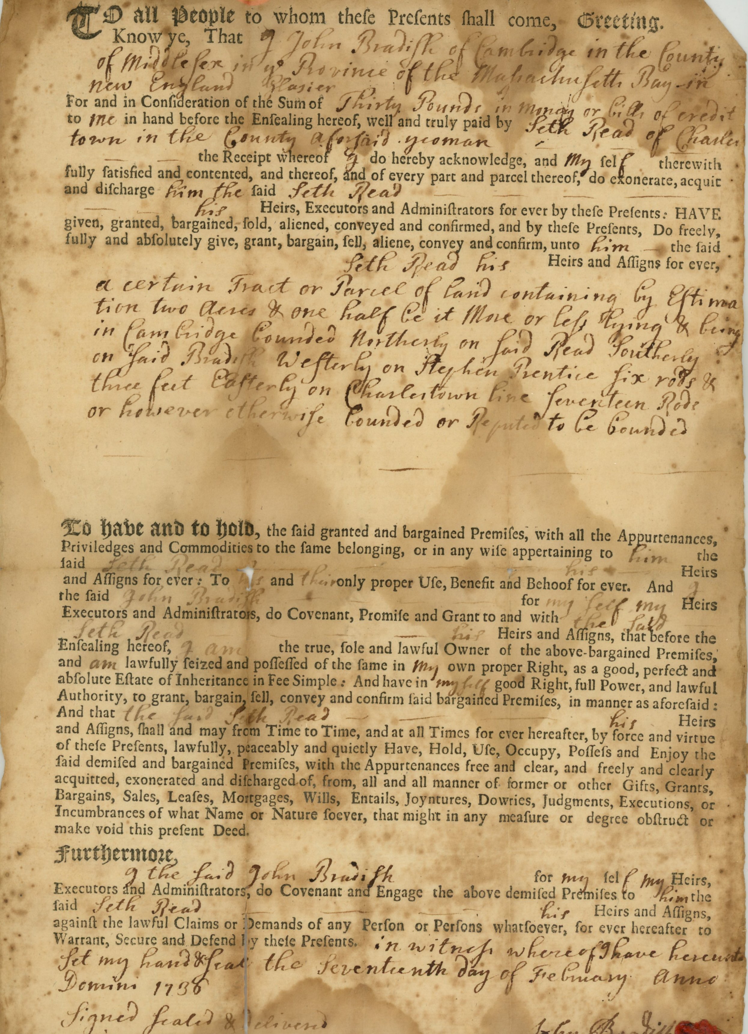 Seth Reed’s will, 1783