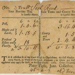 In addition to his new home, Seth owned a slave. Flora was a black woman, who worked for the Reeds for several years (the exact years unknown). Vital records of Arlington state that Flora was a servant for Seth and gave birth to six children (from 1765 – 1779) while working for the Reed family, so we know she was with them for at least fourteen years. An assessor’s report from 1770 confirms that Flora was not a servant; she was a slave. Unfortunately, not much else is known about Flora. She died on September 23, 1791 at age 60.